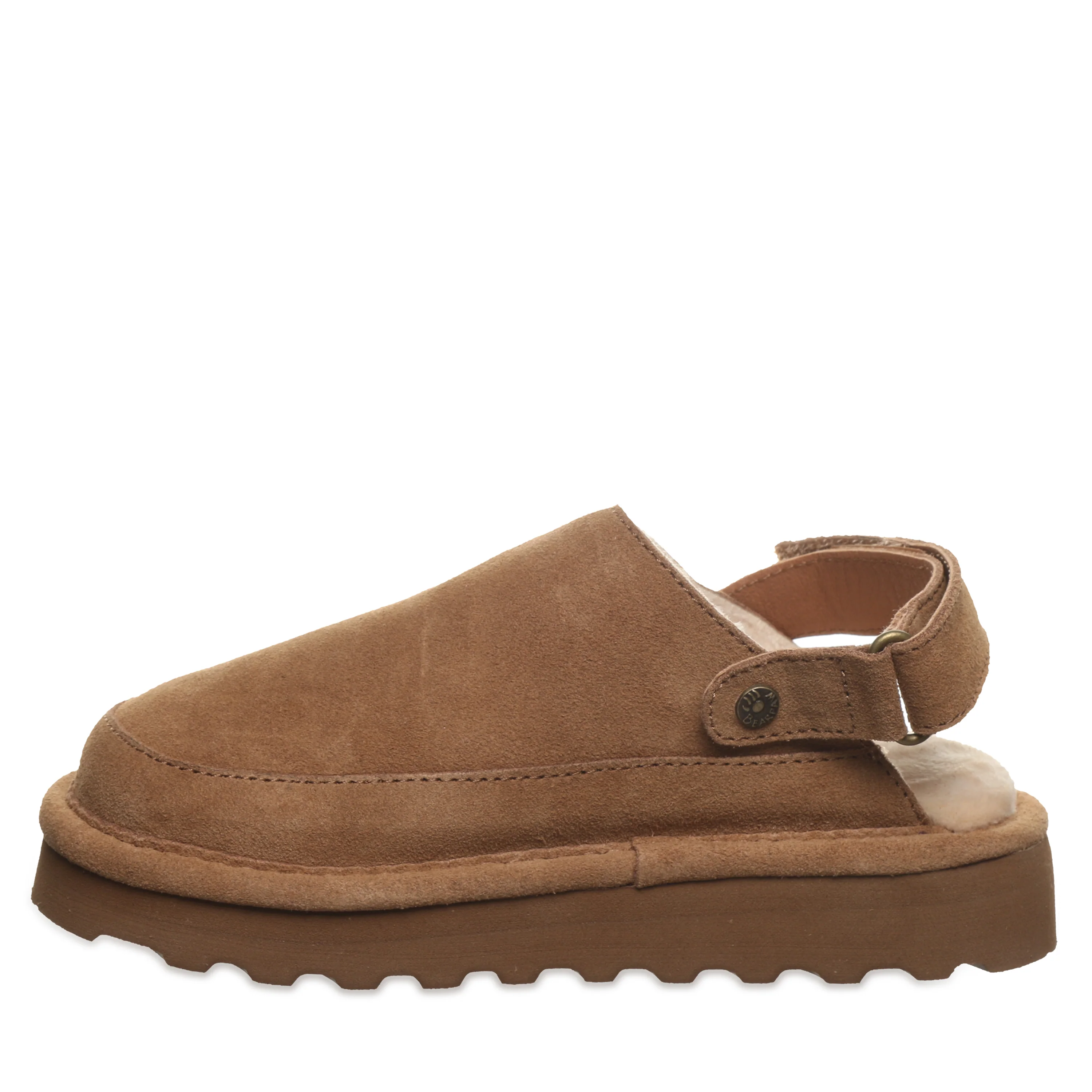 Youth sized best-selling Brooke Clog! These lifted suede clogs tick all the right boxes. The classic slip-on design is enhanced with an adjustable multi-directional strap so you can wear them any way you like - across the top for easy step-in access at home, or around the heel to ensure they stay on when you're out and about. No matter where these clogs take you, the cozy yet light sherpa fleece lining and BearCoat Rain & Stain Repellent will keep feet dry, cozy, and comfortable.